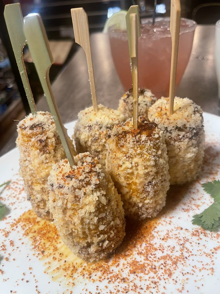 This deep-fried corn is crisp outside, tender inside, and coated with cotija cheese, adobo mayo, tajín, and lime. It’s tangy, savory, and just messy enough to be fun — maybe not first-date food, but absolutely worth it.