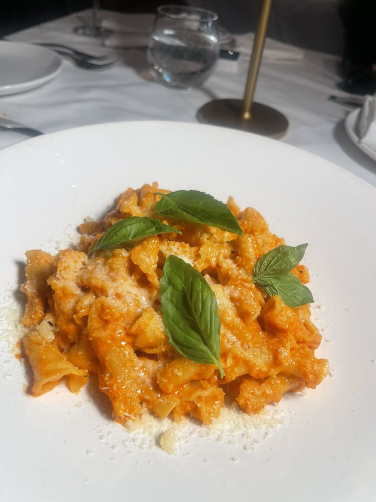 - Campanelle alla Vodka – creamy but not heavy, with a gentle spice that sneaks up on you. Loved that they used campanelle pasta — it holds sauce perfectly!